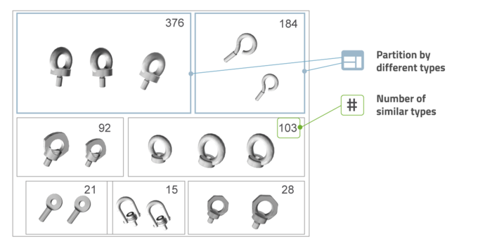 Search result lists with many returns can quickly become very long and confusing. With the Partition Map all search results are bundled into similar part types or families. In this view it’s possible to either use a quick 3D preview or add components to the parts comparison function.